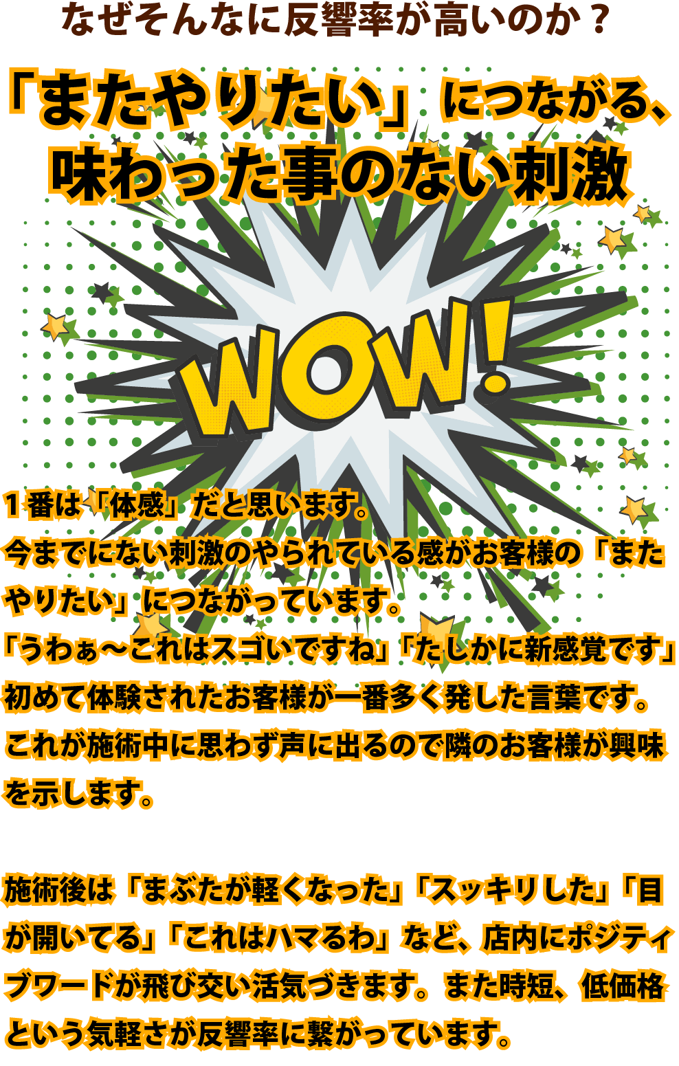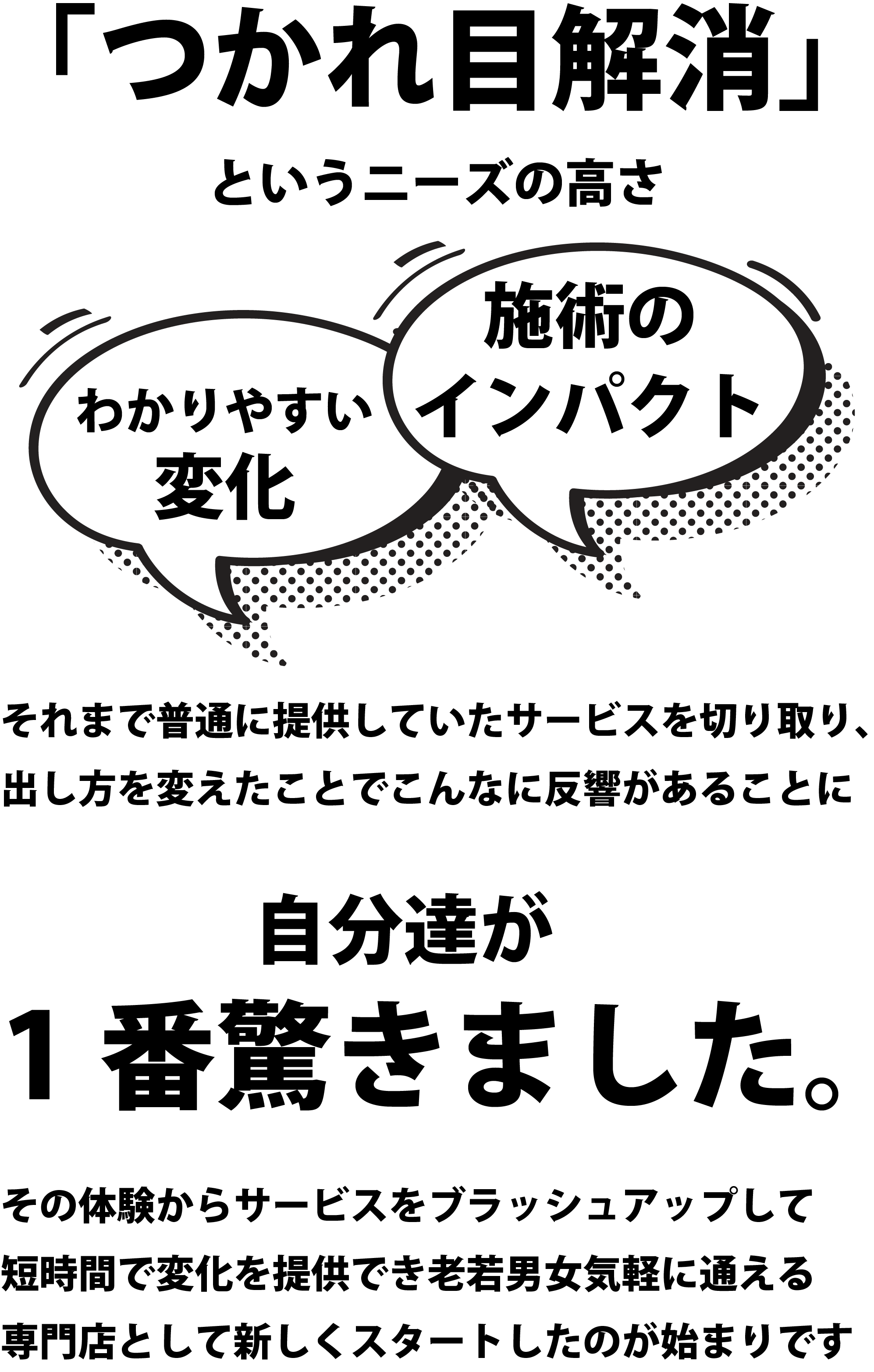 つかれ目解消専門店というそれまでにないサービスの目新しさと強烈なインパクトのシン・感覚。