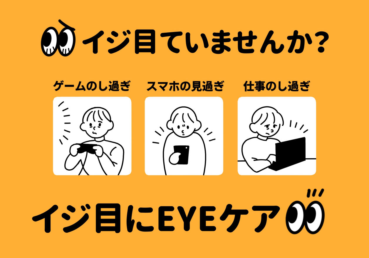 目薬・アイマスク・ツボ押し・眼球体操などセルフケアが中心です。